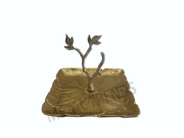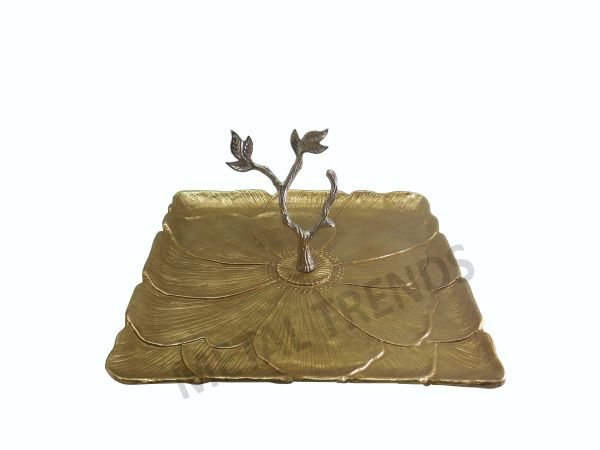 ALUMINIUM GOLD FINISH FLOWER EMBOSSED SQUARE CAKE STAND MED Size: 9.50″ X 9.50″ X 7″
