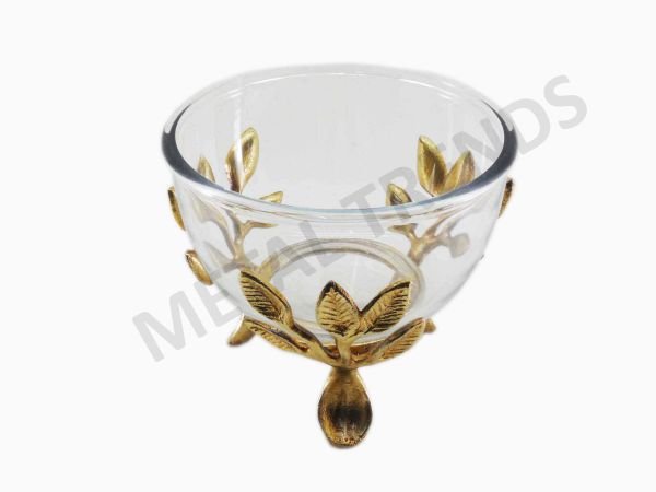 ALUMINIUM GOLD FINISH LEAF DESIGN SERVERWARE Size: 9.50″ X 9.50″ X 6″