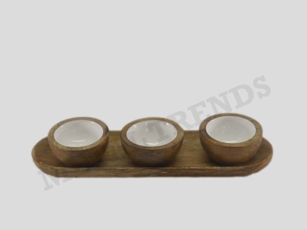 Wood Condiment Server W/Enamel