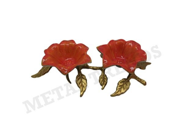Alum Nickle & Brass Plated Leaf Bowl on Stand Server Size: 12-1/2″x6-1/8″x2-5/8″