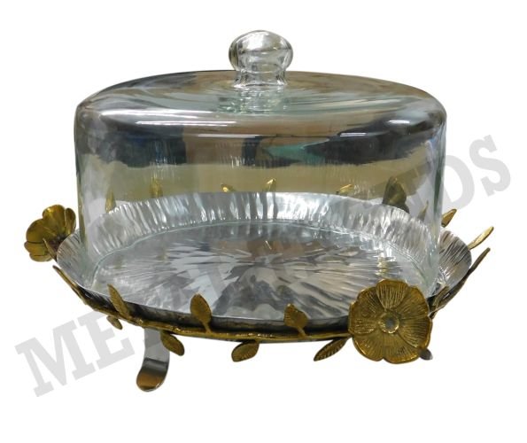 S.S. Brass & Glass Gold Finised 1-Tier Cake Stand Hammerd Size: 13.50″x13″x3.75″