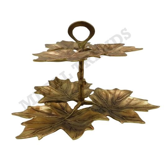 Alum Brass Antique Leaf Condiment Server Stand Size: 18.25″x19.25″x11.75″