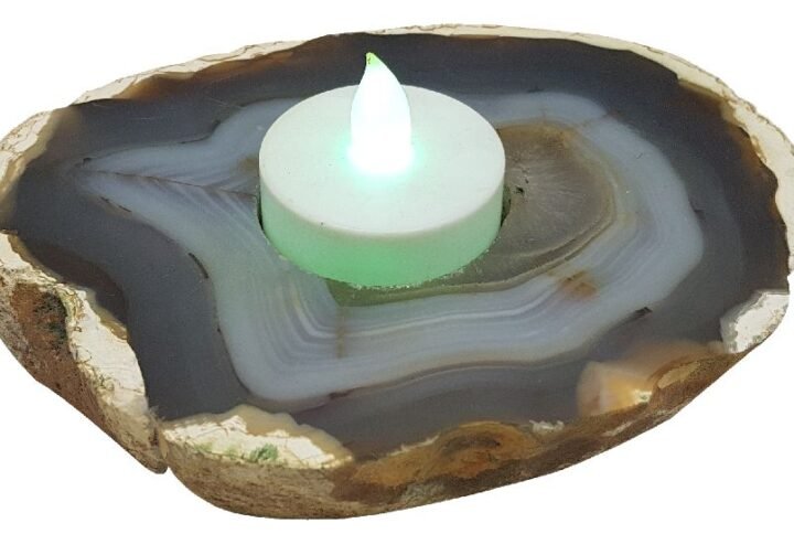 AGATE T-LIGHT HOLDER Size: 4.5 X 3.75 X 1″