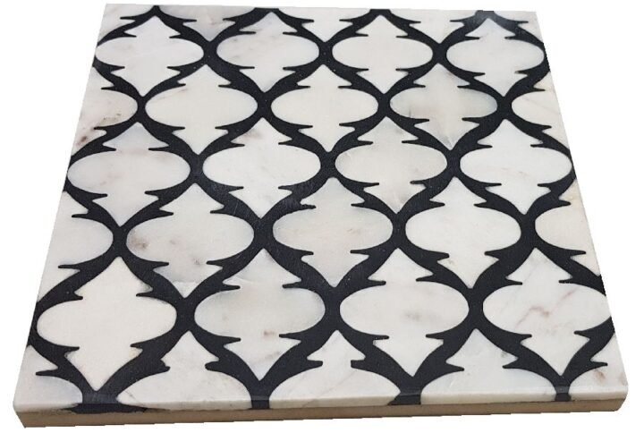 “FEAST” MARBLE/BRASS INLAY ROUND COASTER Size: 12 X 12 X 0.50″