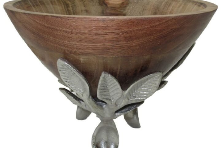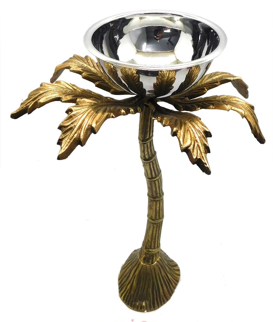 ALUM/STEEL TREE BOWL STAND WITH BRASS ANTIQE Size: 12.5″X12″X18″