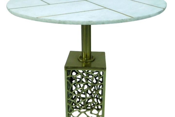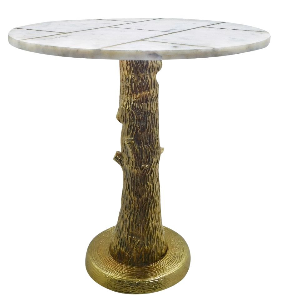 Alum/Marble Brass Antique Bark Table Size; 22.75×22.75×23.25″