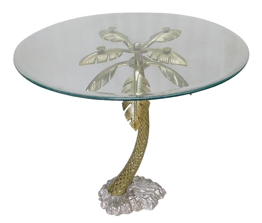 Alum Gold Finish Nickel Palm Tree Tabl Size: 26x26x28″