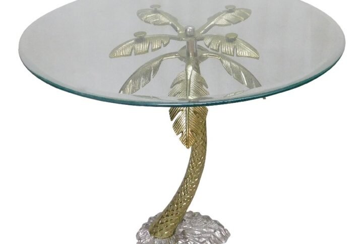 Alum Marble Gold Finish Palm Tree Table Size: 26x26x28″