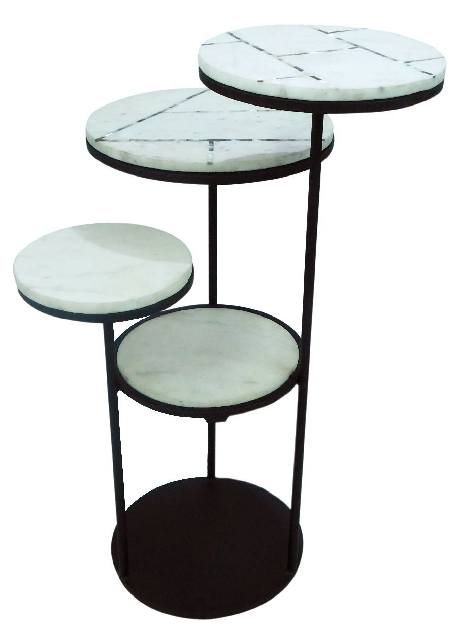 Iron/Marble Black Powder Coated Tier Table Size; 26x25x36.5″