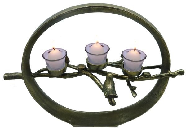 ALUMINIUM/WOOD GOLD FINISH TWIG CANDLE HOLDER ON MARBLE BASE Size: 15.75 X 7 X 23.5″