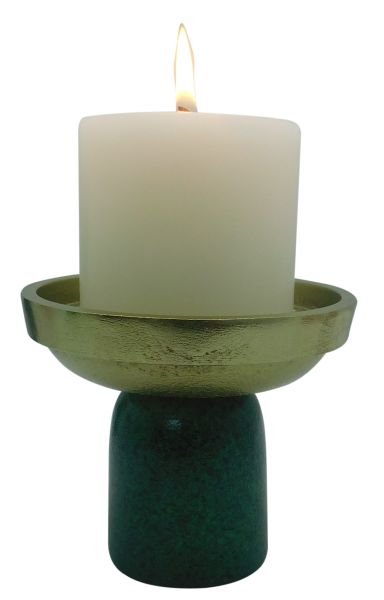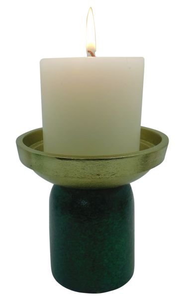ALUMINIUM GOLD/GREEN FINISH CANDLE HOLDER SMALL Size: 4.75 X 4.75 X 4″