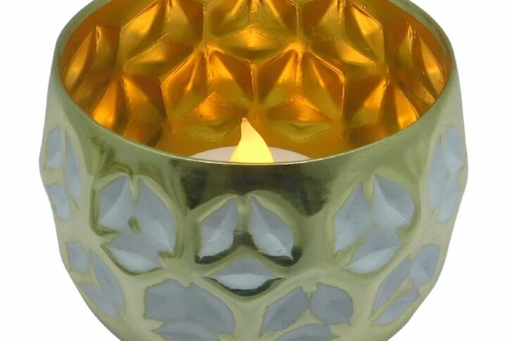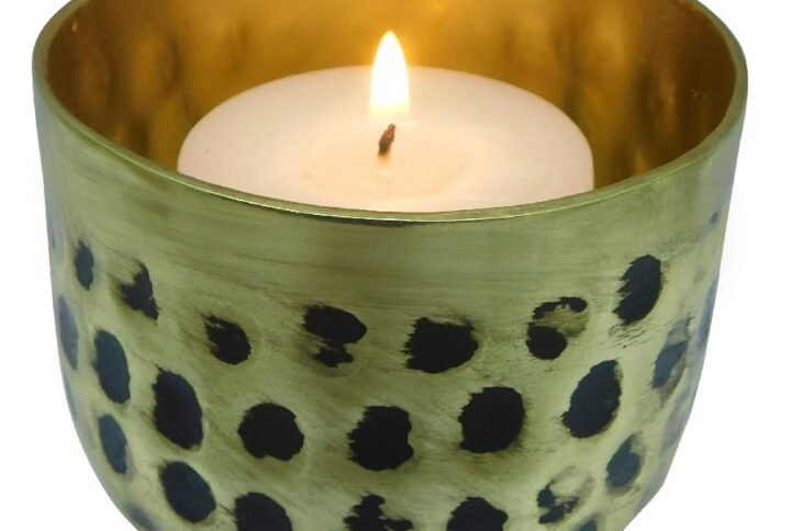 ALUMINIUM GOLD/BLACK ANTIQUE FINISH T-LIGHT HOLDER Size: 3.25 X 3.25 X 3″